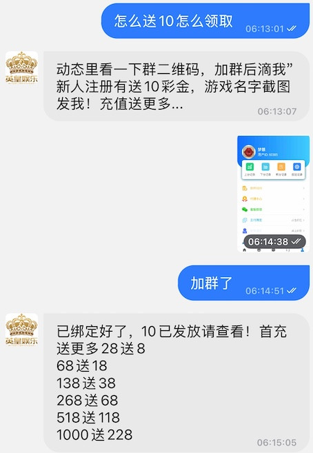 白菜网论坛 英皇娱乐注册联系旺旺客服领取送10 到账情况:自测【充值后果自负】 领取方式:旺旺客服467516292 安全系数:低 平台资历:未知 会员评分:★☆☆☆☆ 申领网址:http://yh28.shop/ 提现要求:最低提现额度为100元 图例介绍