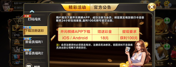注册送彩金 开元KY50先下载app然后绑定手机号银行卡 找在线客服申请送18 到账情况:自测【充值后果自负】 领取方式:先下载app然后绑定手机号银行卡 找在线客服申请送18 安全系数:低 平台资历:未知 会员评分:★☆☆☆☆ 申领网址:https://3236ky50.com/ 提现要求:最低提现额度为100元 图例介绍