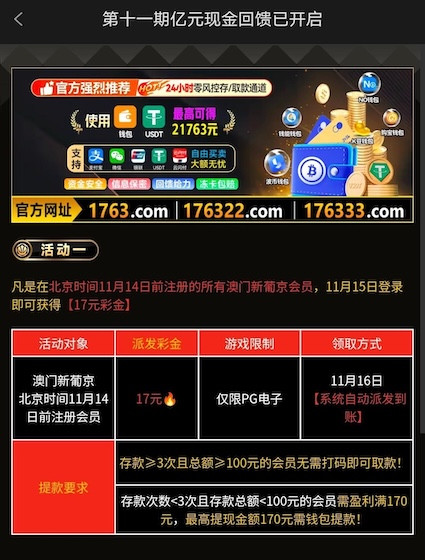 开户彩金 葡京1763历史注册彩金送17 到账情况:自测【充值后果自负】 领取方式:历史注册彩金送17 安全系数:低 平台资历:未知 会员评分:★☆☆☆☆ 申领网址:http://1763.com/ 提现要求:最低提现额度为100元 图例介绍